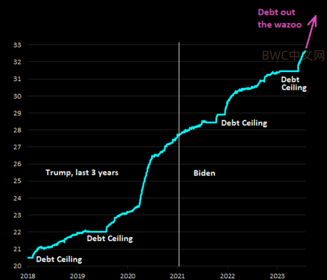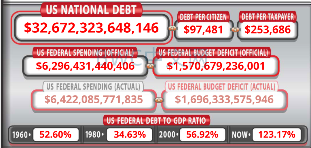 8月1日,美国国债时钟显示,美国联邦债务总额已达到约32.7万亿美元,自债务上限协议达成以来不到两个月间,美国政府债务飙升近1.3万亿美元。