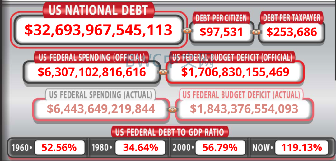 而截至 8月11日,如下这张每秒钟都在增加的美国国债时钟显示,美国联邦债务总额已经高达32.7万亿美元。相当于2023年以来,就增加了1.7万亿美元债务。并且从6月达成债务上限协议以来,短短两个月,美国联邦债务总额就增加约1万亿美元。