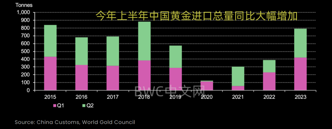 值得一提的是,根据世界黄金协会8月公布的最新报告显示,今年上半年中国的黄金进口总量达到 792 吨,较去年同期大幅增加400 吨。