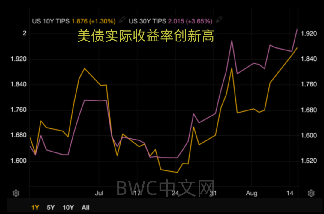 美国30年期通胀保值国债(TIPS)收益率突破2%,刷新2011年以来新高。此前一天,美国10年期实际收益率攀升逾6个基点,至1.84%,为2009年以来的最高水平。