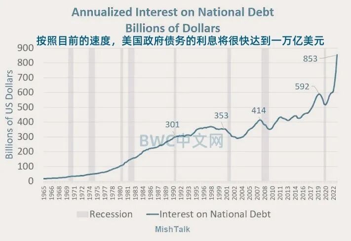 正如美国金融网站零对冲在2月7日援引的报告所示,按照目前的速度,美国联邦债务的利息支出将很快达到一万亿美元。