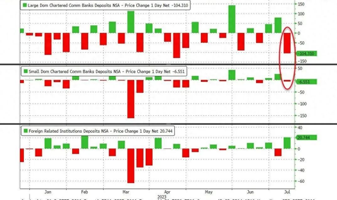 雪上加霜的是,美联储在9月24日公布的经季节调整的数据显示,截至9月22日当周,美国商业银行存款骤减787亿美元,是自硅谷银行倒闭后的一周以来的最大存款外逃,这表明,美国银行业的存款再度呈现下降趋势,特别是美国的大型银行。