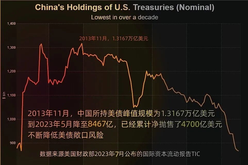 美国财政部的报告数据表明,最近十年内,中国更是累计抛售了占仓位比例近36%的美债,和2013年的1.32万亿美元的峰值相比净抛售清仓了近5000亿美元的美债,且从去年开始清算美债的速度明显加快,仅2022年1月至今就清仓了占26%比例的美债。