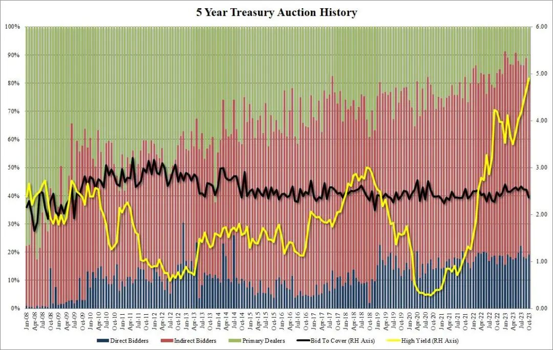 这也使得美国财政部当天拍卖的520亿美元5年期国债非常惨淡,得标利率和投标倍数均不及预期,很明显,拍卖的结果如此糟糕,高利率再加上美国政府债务赤字庞大,美债供应量的飙升,都会推动债券收益率上升,美国较长期国债近来遭遇的剧烈抛售也令美联储量化紧缩政策成为市场焦点。