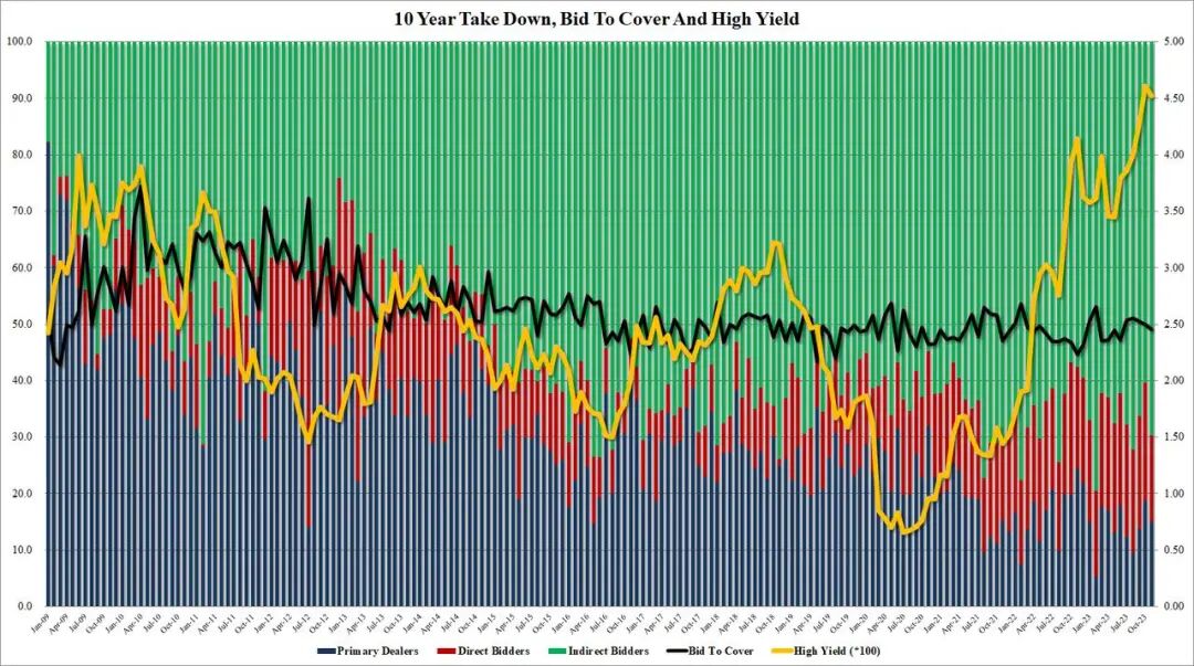 11月9日,美国财政部发行400亿美元的10年期国债,虽中标收益率略高于发行前交易水平,但仍表现平平,投标倍数亦低于过去六次新债发行的平均水平。