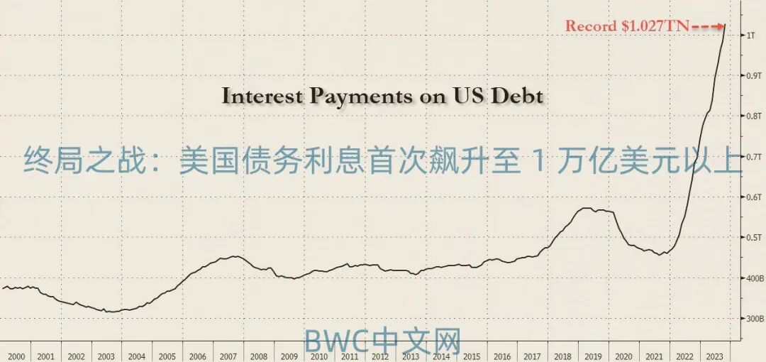 目前,美国的债务总额已达33.7万亿美元,而且还在不断增长。在截至2023年9月30日的财政年度,美国的债务利息支出总额约为 6600亿美元,高于上一年的4750亿美元。美国国会预算办公室(CBO)的估计显示,到2028年,净利息成本将达到国内生产总值的3%。