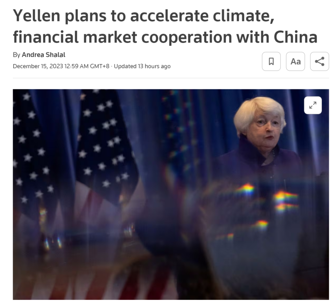 有华尔街分析师称,耶伦管理的美国财政部,作为美国国债的发行者,在中东等国的资金大笔撤离美国,甚至日本英国等盟友国家都纷纷抛售美债的背景下,预告2024年即将重启中国之行,似乎也是在为美国国债寻找有实力的大买家而准备。