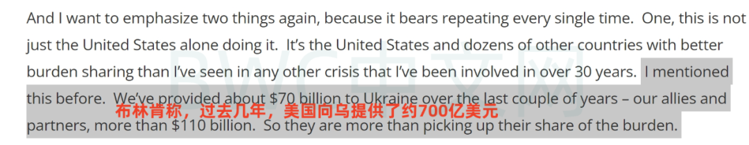 值得注意的是,布林肯还强调,我们向乌提供的几乎所有安全援助以及将要提供的安全援助,都在这个补充预算请求中——都被投资到了美国。这就是花费的地方。这不仅有助于采购乌所需的武器;它也为美国提供了良好的就业机会。建设我们自己的国防工业基地。因此,从很多方面来说,这对我们是双赢的,这就是为什么我希望国会尽快采取行动。