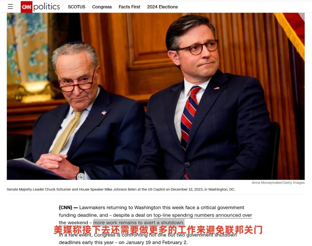 对此,有美媒分析称,这些资金可能并不足以满足美国整个2024财年的联邦运营,接下去还需要做更多的工作来避免联邦关门。