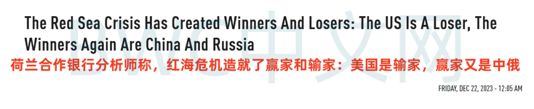 而在美国持续染指中东乱局的过程中,显然,美元的吸引力也在中东地区也进一步下降。作为上世纪70年代石油美元协议的参与者,当中东最主要产油国沙特开始去美元化时,正如美国金融分析机构零对冲不久前援引荷兰合作银行的分析师本杰明·皮克顿称,红海危机造就了赢家和输家:美国是输家,赢家又是中俄。