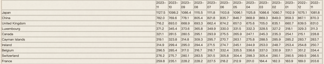 值得一提的是,据美国金融网站Zerohedge在1月16日援引的一份最新行业报告中称,自从全球央行没有向国际货币基金组织或世界黄金协会公开报告一些收购黄金储备和民间黄金矿产的数据以来,至少有数千吨黄金已经运抵中国,鉴于中国持有的美债规模在去年下降了约23%(具体数据细节请参考下图),所以,其实际购买黄金的量可能会更大。
