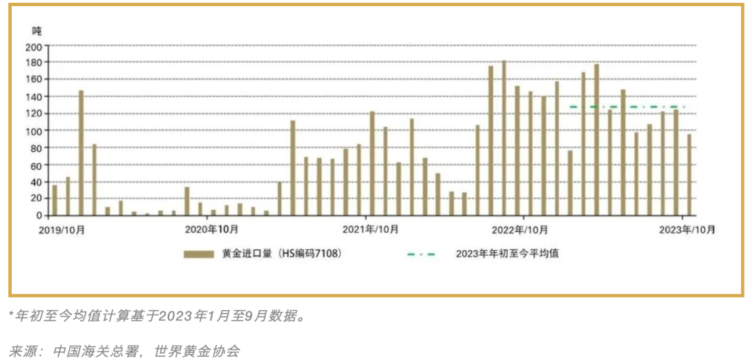 值得一提的是,据世界黄金协会在1月12日发布的最新数据,去年10月中国进口黄金95吨,9月和8月分别进口124吨和123吨,这也使得去年前10个月,有1241吨黄金已经分批从欧美运往中国,高于近三年以来的平均水平。