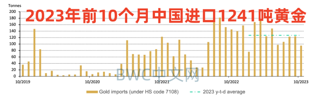 与此同时,世界黄金协会报告显示,2022年前10个月中国黄金进口总量为 1,241 吨。再加上全年增加的225吨黄金储备,相当于目前已知的,过去一年间,至少约1466吨黄金已经陆续从美欧等海外市场运抵中国。