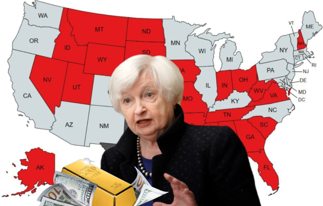 不仅于此,截至1月26日,全美至少36个州纷纷用到包括宣布将金银视为法定货币,开发州独立的以黄金背书的数字货币,州独立的金银储备库,提出恢复金本位制发行独立货币等一种或多种方法来挑战美联储,和去美元化。