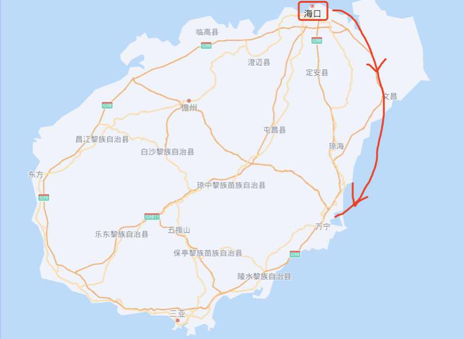 这次规划的时候挺叛逆的,特别不想去三亚这种热门的地方,想远离人群,但第一次这么长时间独行(之前最多也就3天),最终选择了东线:海口——文昌——万宁——海口