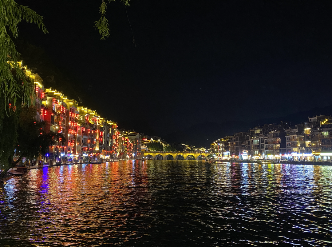 镇远很幽静,一条“S”形河隔开了两岸,据说是宋代就有了这个地方,宋代就叫镇远,名称也沿用至今。S型的这条河叫:舞阳河。天色略晚的时候,会在有一侧的广场上当地人跳跳广场舞,很放松,小镇的感觉就起来了。但实话说还是夜景更好看,因为河边两侧的红灯笼拍照挺好看的。