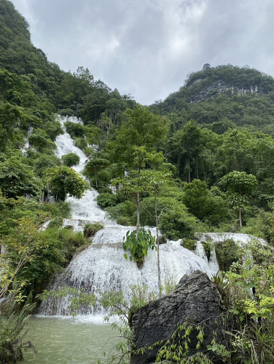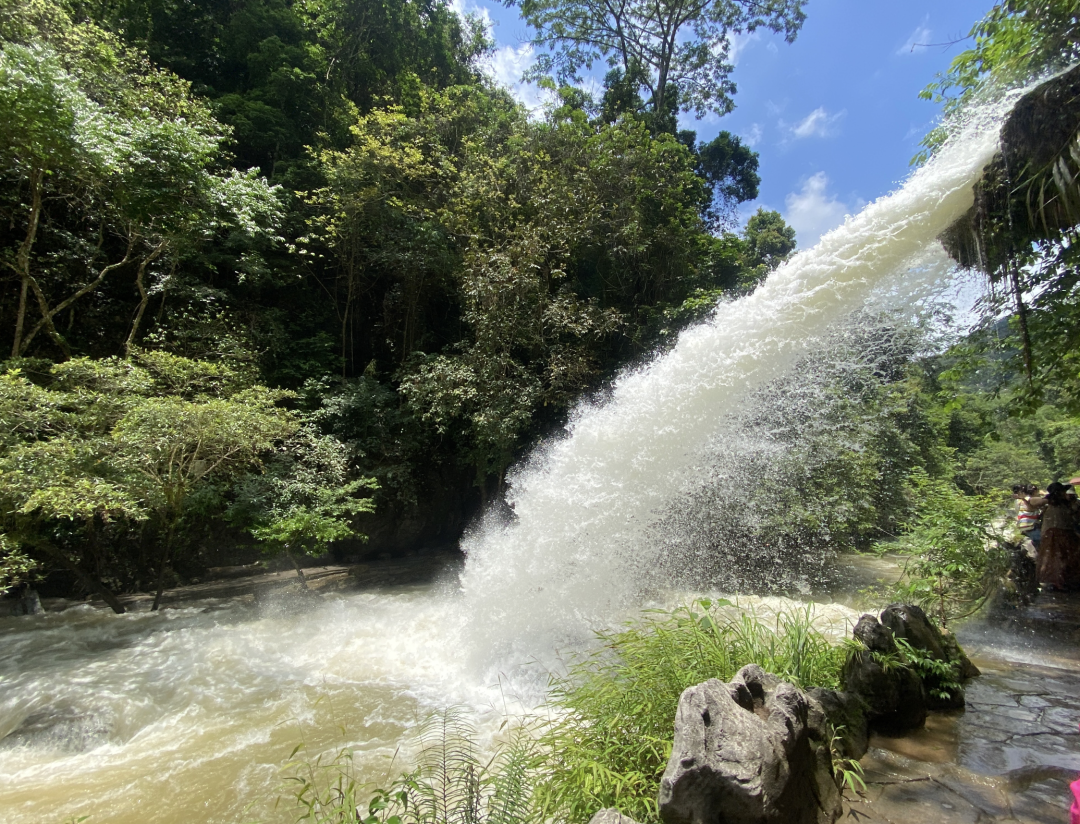 民宿就在景区附近。荔波大小七孔其实声名在外,比如「地球的绿腰带」等美誉。其实来大小七孔还挺幸运的,在我抵达的前天就在下大暴雨,景区动不动就关了,好在我到达的前几天开放了。水量那叫一个充沛,还绿腰带呢,成黄腰带了。