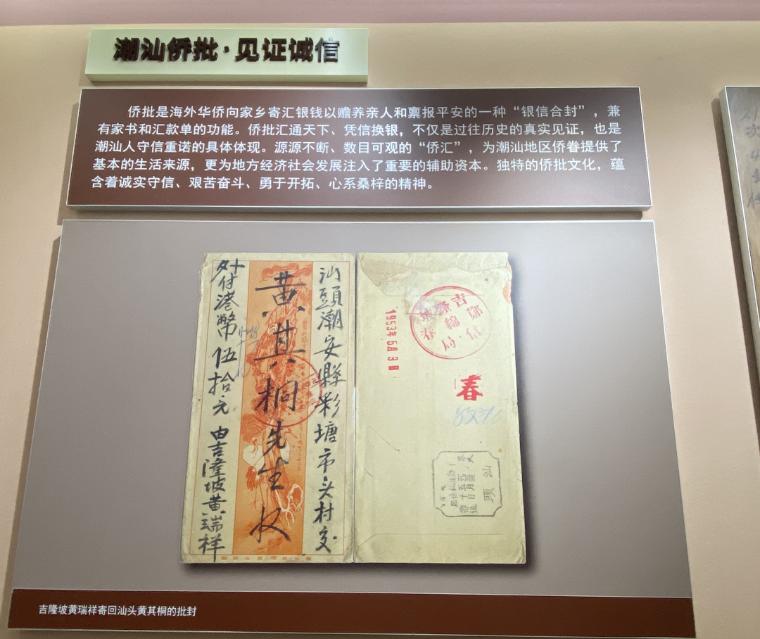 汕头逐渐建立起来也离不开侨商的支持,比如水厂、铁路这些兴建,都是侨商发起的。看了以前侨批也挺有意思,侨批就是海外华侨像家乡邮寄银钱,用于赡养老人和保平安的「银信合封」,就是家书和汇款单的功能。