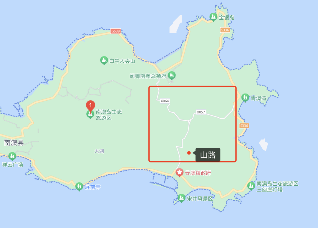 因为经常在城市开,我其实不知道电动车不能爬坡,比如走山路不行,所以地图(下图)中间那些路都是山路,电动车去非常危险。其次,沿海路其实是有缓坡的,我对电动车操作也不特别熟,最开始用缓坡,车是龟速行驶哈哈。