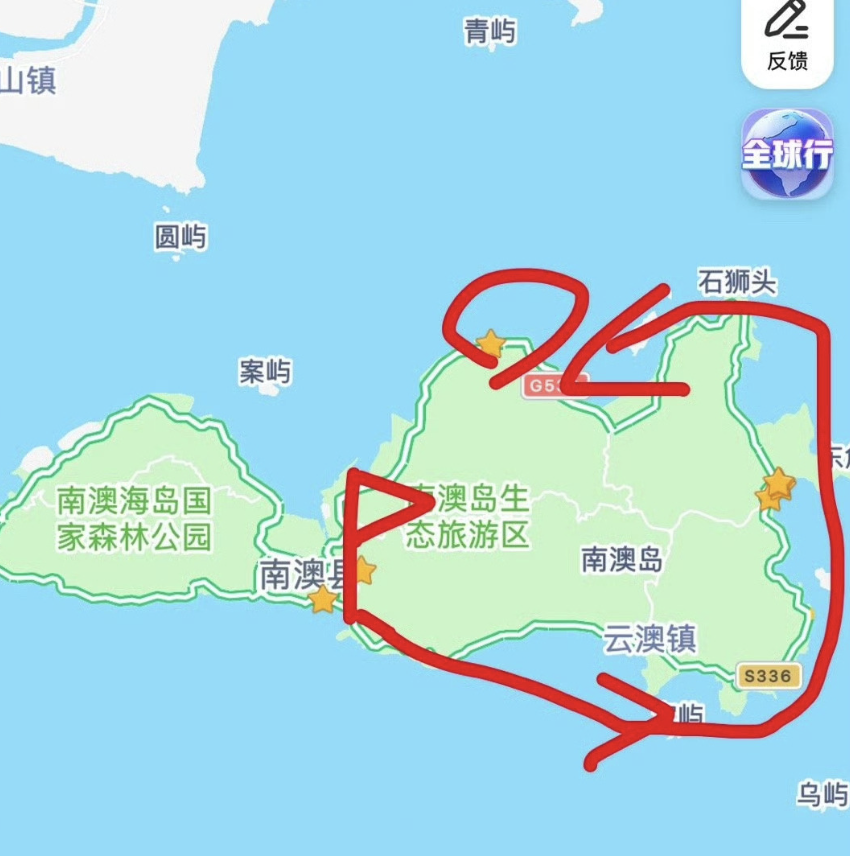 开车很放松,也有很多观景台,方便的地方停个车走走也不错。而且南澳岛它其实是个「8字型」环岛,绕一圈100公里吧。我没自驾是因为相对路窄,怕不安全。在市区选择了大巴前往,车有点难等,间隔太久了。南澳岛大小也算个景区,就不能热门的时候多开几班?