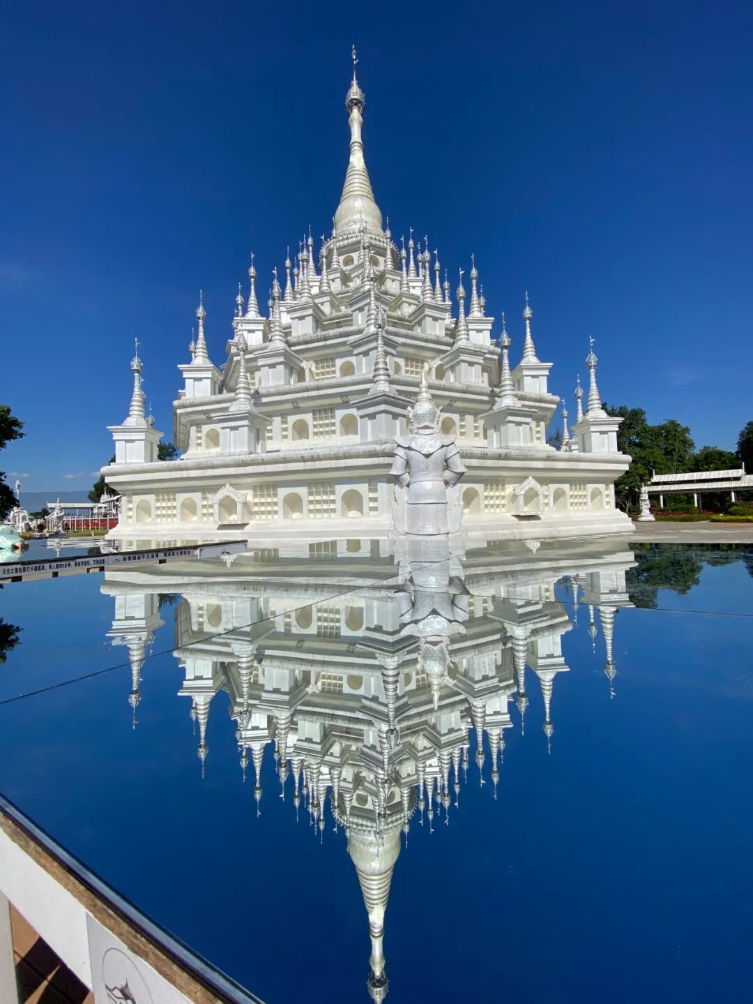 芒市比较著名的景点是金塔、银塔。第一次体验网红旅拍,金塔晚上拍照好看,金碧辉煌很漂亮,里面确实是有佛塔可以参拜。而银塔白天更出片,但里面已经没有佛塔了,迁走了。里面著名打卡点叫:天空之境,就是前面有个镜子,后面是银色佛塔,拍出来能倒影。