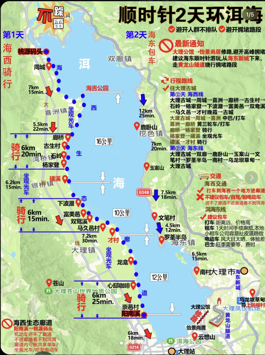 我本计划是电动车环洱海,也感谢老天,那几天下雨,幸好没环,环了得一路骂娘。距离太远,洱海全程100+公里,而且路上车太多,不安全。