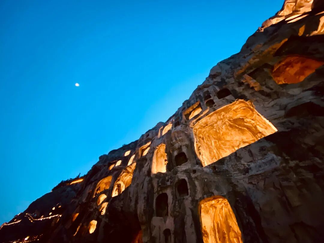 这次去也取了巧,预约了15:30-17:30入场的票,17:00左右入场,差不多7点看完,呆了一会,天慢慢黑下来,正好可以看见石窟的夜景。石窟随着天色降临一个一个的亮起,不虚此行。