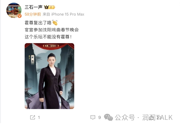 近日,《沈阳春节戏曲晚会》官宣,霍尊将在舞台上献唱成名曲《卷珠帘》。这被认为是霍尊正式复出的信号,引起了粉丝们的热烈关注。复出后的首秀选择在春节戏曲晚会上亮相,无疑让人期待他在舞台上的精彩表现。