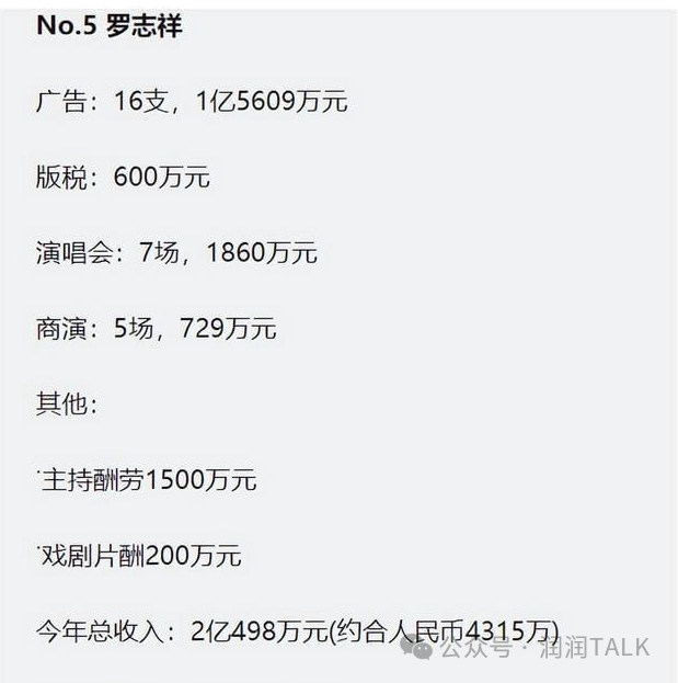 罗志祥的收入来源多样化,主持商演、参与综艺节目,以及经营潮牌店和蛋糕店,他的财务渠道相当广泛。尽管在影视片酬方面相对较低,但他凭借综艺片酬和商演的高额报酬,仍能保持着可观的收入。而在事业早期,他以音乐成就为依托,曾连续多年在吸金榜上获得靠前名次,给自己和老板都带来了可观的利润。