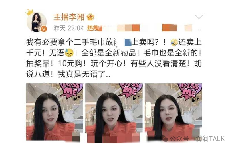 李湘辟谣:全部是全新物品,毛巾也是全新的!