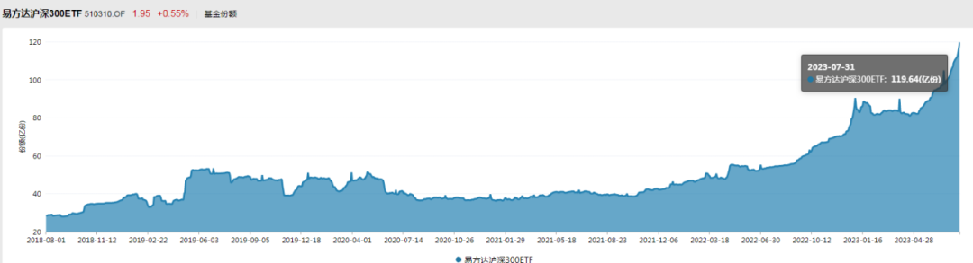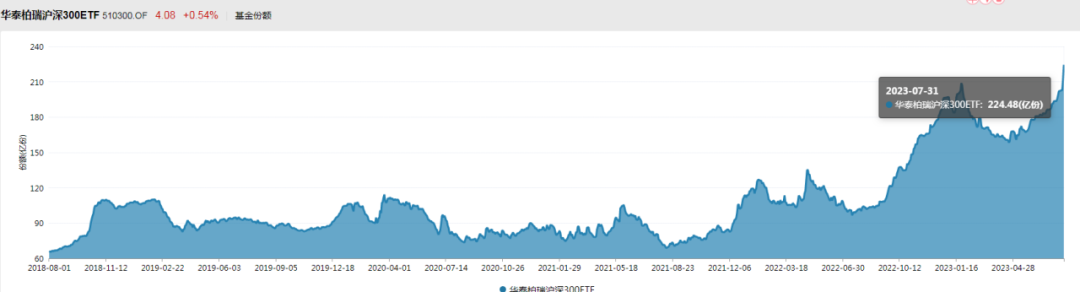 其中,前述市场规模最大的股票ETF产品华泰柏瑞沪深300ETF月内份额净增长39.27亿份,月底份额升至224.48亿份,月底规模升至917亿元,均再创历史新高;同时,沪深300ETF易方达月内份额也增长了15亿份至119.64亿份,并以28亿元的资金净流入排在第六位,最新规模达233亿元,份额、规模也均再创新高。