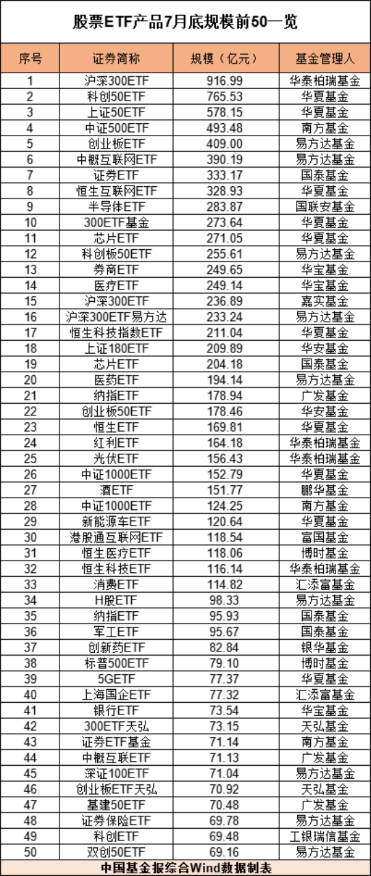 具体来看,证券ETF月内份额减少了46.7亿份,资金净流出超43亿元,成7月净流出最多的股票ETF产品;上证50ETF以40亿元的资金净流出排在第二位;券商ETF则分别以24.14亿元、10.38亿元的净流出排在三、四位。