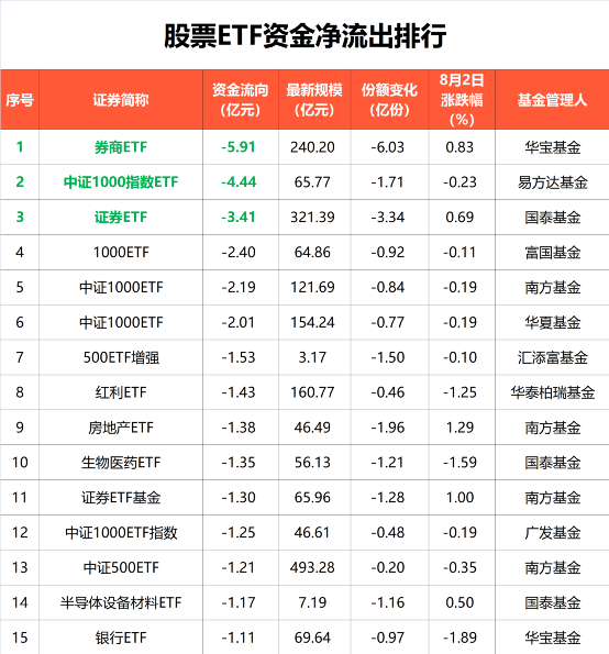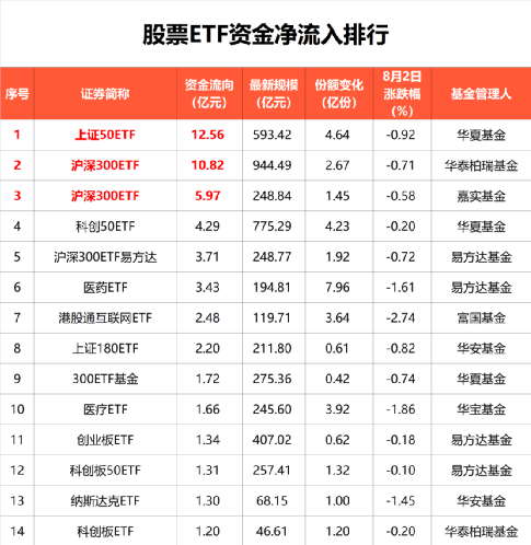 在昨日震荡下跌市中,资金再次借道股票ETF市场出现净买入,8月2日总份额增长19.66亿元,按照区间成交均价测算,净流入资金约为25.71亿元。