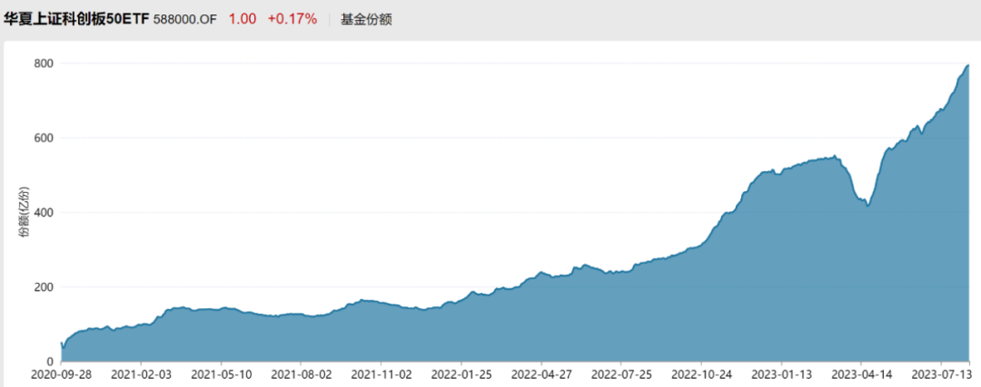 从最新基金份额来看,除了易方达创业板ETF日前刚创出历史新高,华夏科创50ETF再度创出新高,华泰柏瑞恒生科技ETF距离历史新高也仅一步之遥。