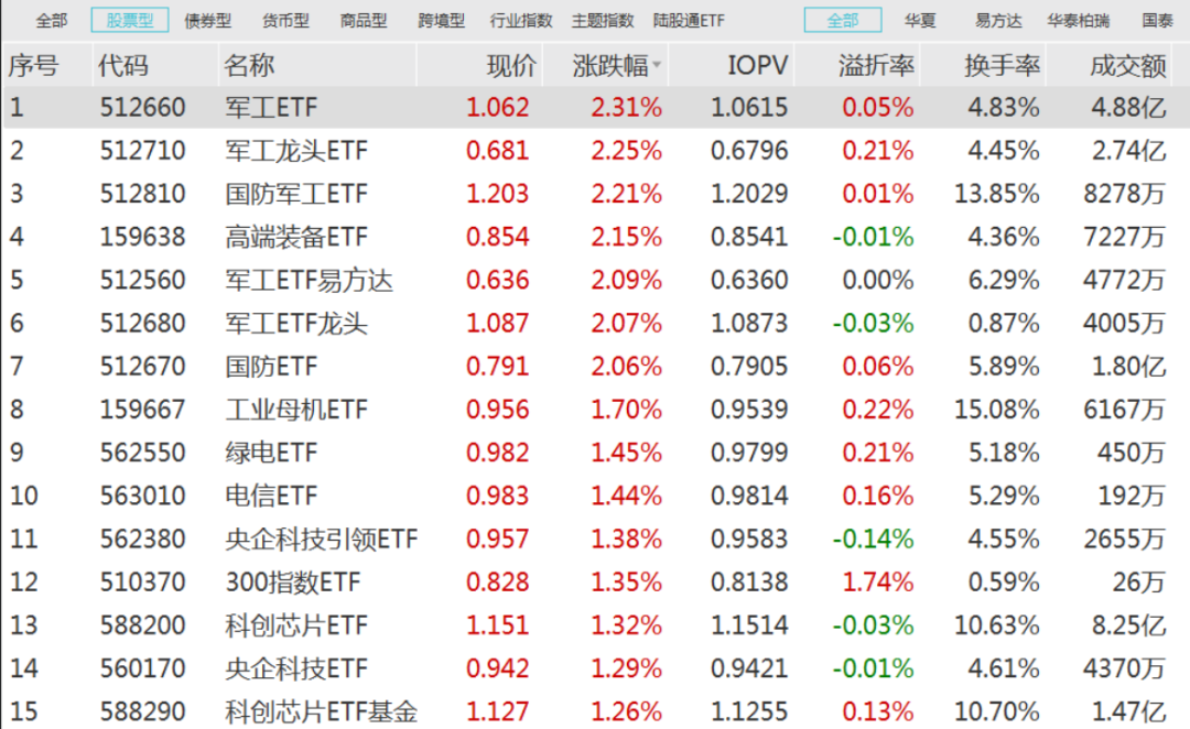 今日军工ETF领涨