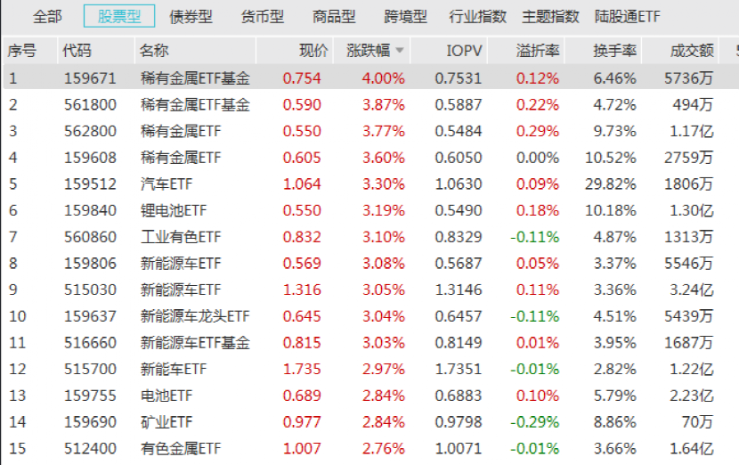 稀有金属ETF领涨