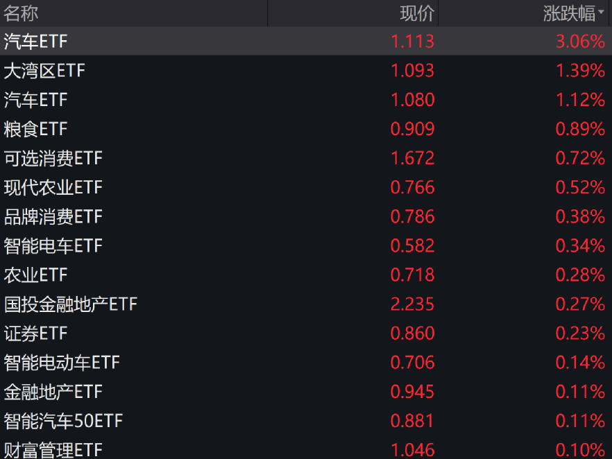 从今日股票ETF二级市场表现来看,部分汽车、大湾区等行业主题ETF逆市收涨。