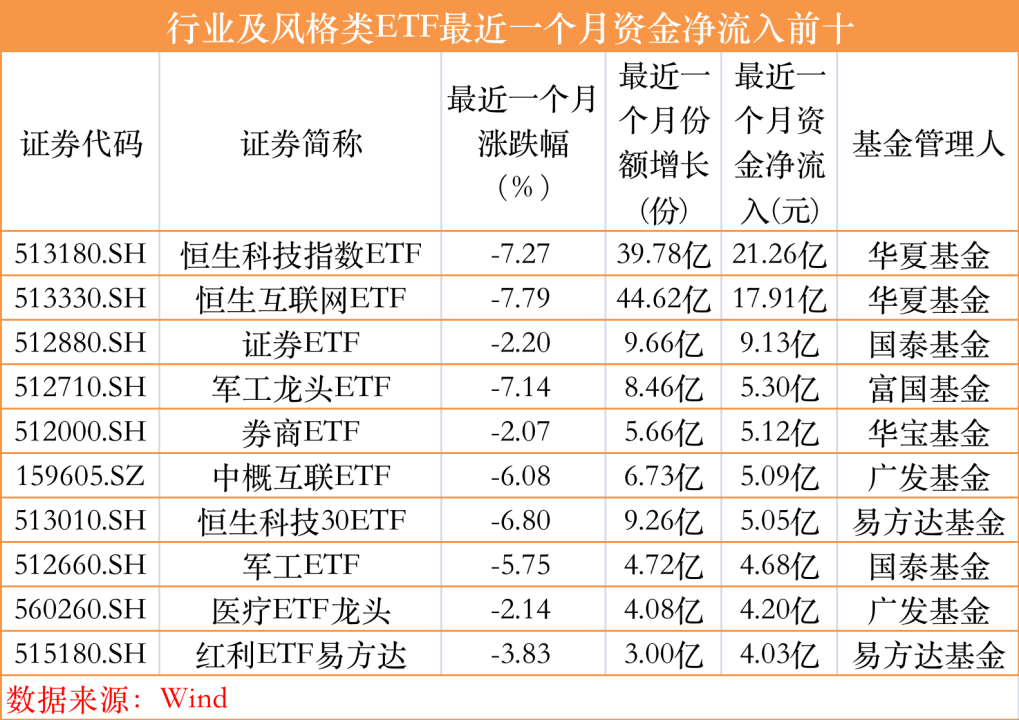 与此同时,由于近期港股市场继续下跌,华夏恒生互联网ETF、华夏恒生科技指数ETF、易方达恒生科技30ETF等港股ETF越跌越买,份额继续增长。