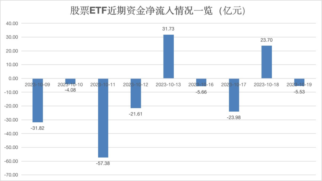 短期避险情绪笼罩之下,股票ETF市场的资金也呈现小幅净流出局面,据银河证券基金研究中心数据统计,10月19日,全市场股票ETF资金净流出超5亿元。