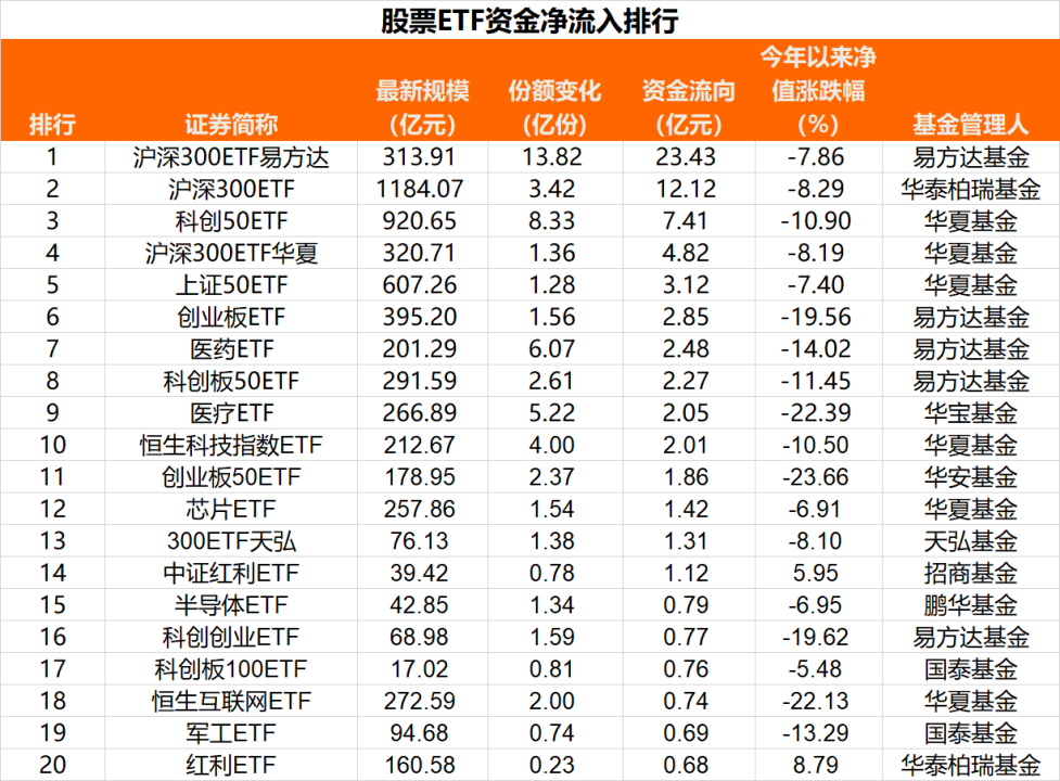 沪深300ETF、科创50ETF、创业板ETF“吸金”