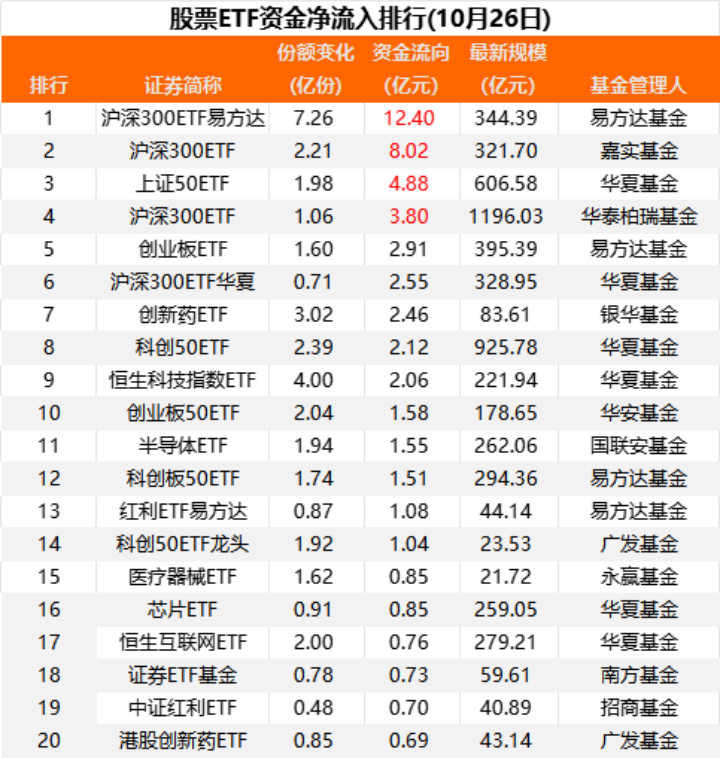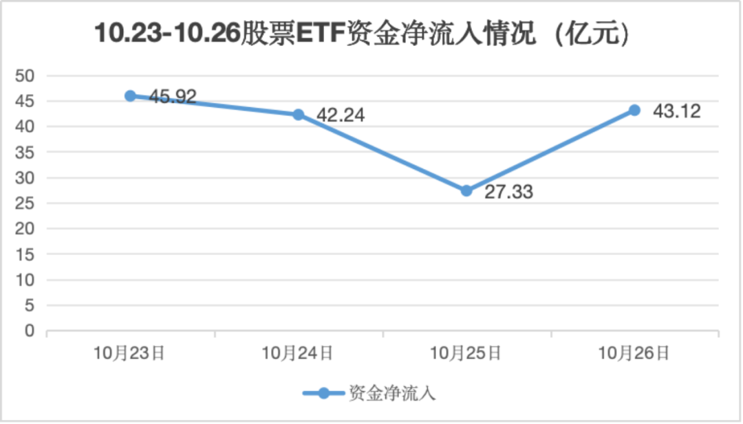 10月26日,A股三大指数继续小幅反弹。市场底部区域,资金借道股票ETF抄底的意愿强烈。