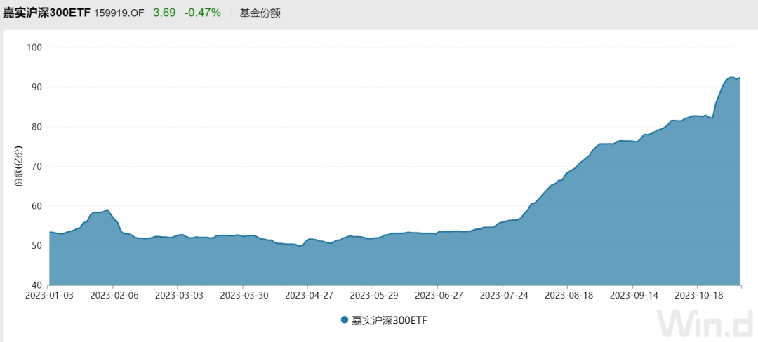 此外,华夏上证科创板50成份ETF、嘉实沪深300ETF、国泰中证全指证券公司ETF、易方达上证科创板50ETF等7只ETF,10月23日以来份额增长均超过5-10亿份不等,其中,嘉实沪深300ETF在此期间获得40.99亿元资金净流入(按照成交均价计算)。