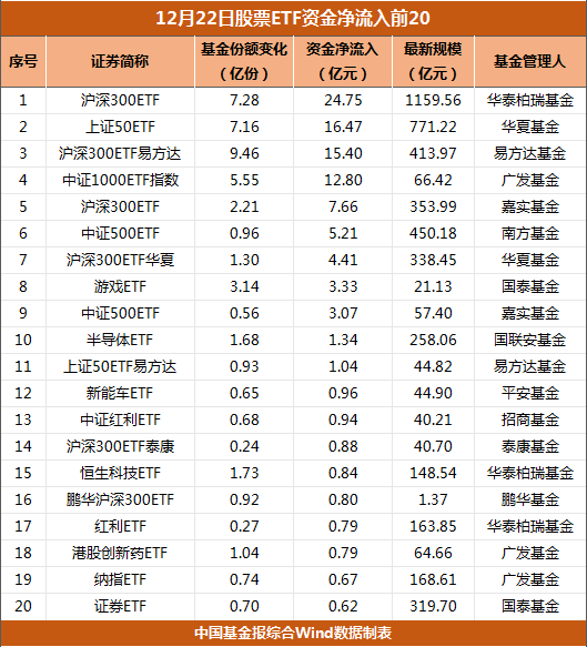 从资金净流入排行看,当日宽基ETF仍是吸金主力,并有4只净流入超10亿元。其中,沪深300ETF以24.75亿元的净流入位列第一,上证50ETF、沪深300ETF易方达分别以16.47亿元、15.4亿元的净流入排在第二、三位。排在第四位的中证1000ETF指数当日净流入为12.8亿元。