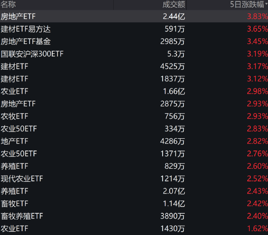 从当周股票ETF二级市场表现来看,房地产、建材、农业等行业主题ETF涨幅领先,通信、5G、游戏、人工智能等ETF则跌幅居前。