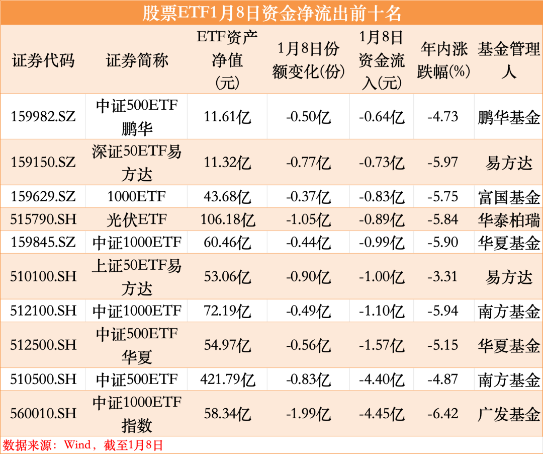 1月8日,A股市场延续调整,股票ETF再现资金逆势净流入。