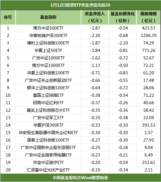 净流出方面,当日有6只产品净流出超1亿元。其中,南方中证500ETF、华泰柏瑞沪深300ETF净流出均超2亿元,分别位列第一、二位。