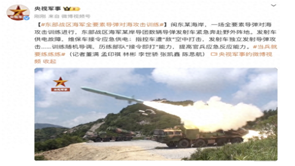 (图解:央视军事报道截图,解放军开展全要素导弹对海攻击训练)