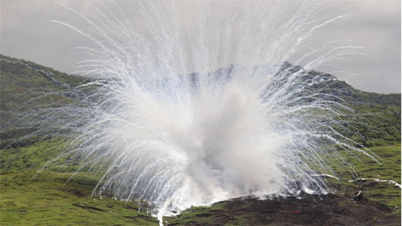 (图解:白磷弹爆炸后会释放出有毒的白色烟雾)