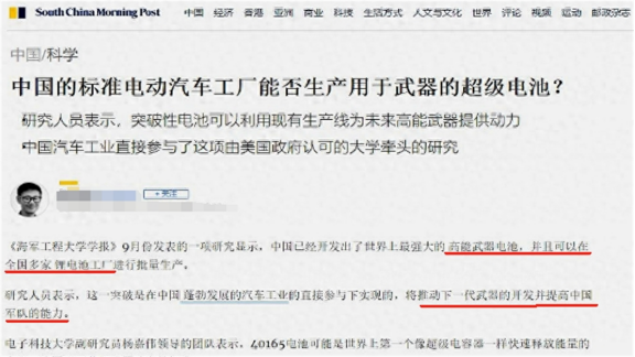 《南华早报》报道称,中国科研团队在《海军工程大学学报》上发布最新研究成果,文中指出,这款“超级电池”又叫做40165电池,是世界上第一个能快速释放能量且可以量产的电池。