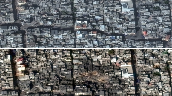 (图解:美媒发布的难民营卫星图像,可以看到难民营遭到大面积破坏)